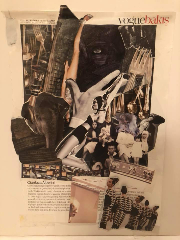 Medium: pencil, paper, black sharpie marker, tape, scissors, various magazines, Turkish Vogue magazines
