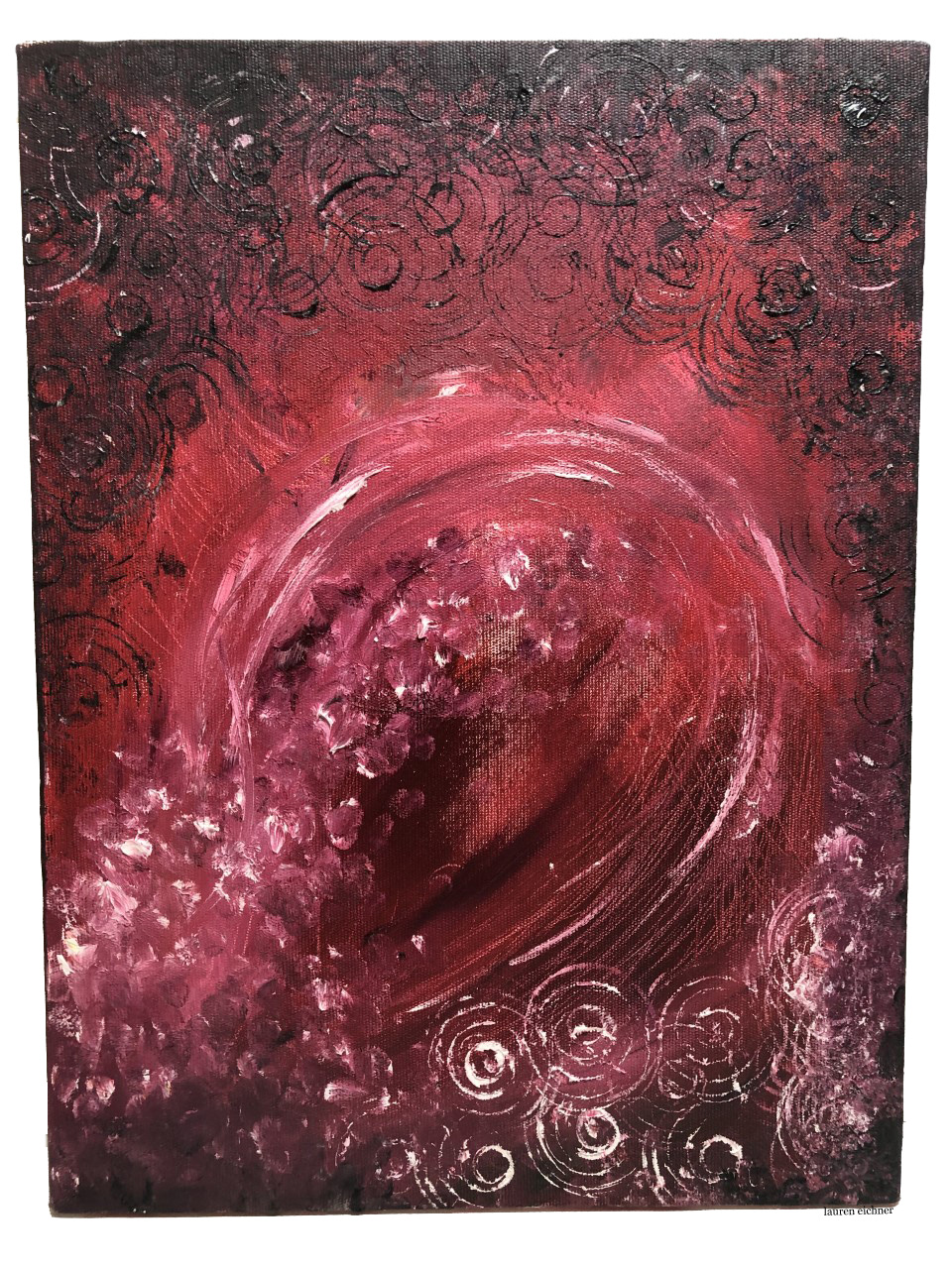 Oil paint, fork, Blender Bottle metal ball, on canvas.